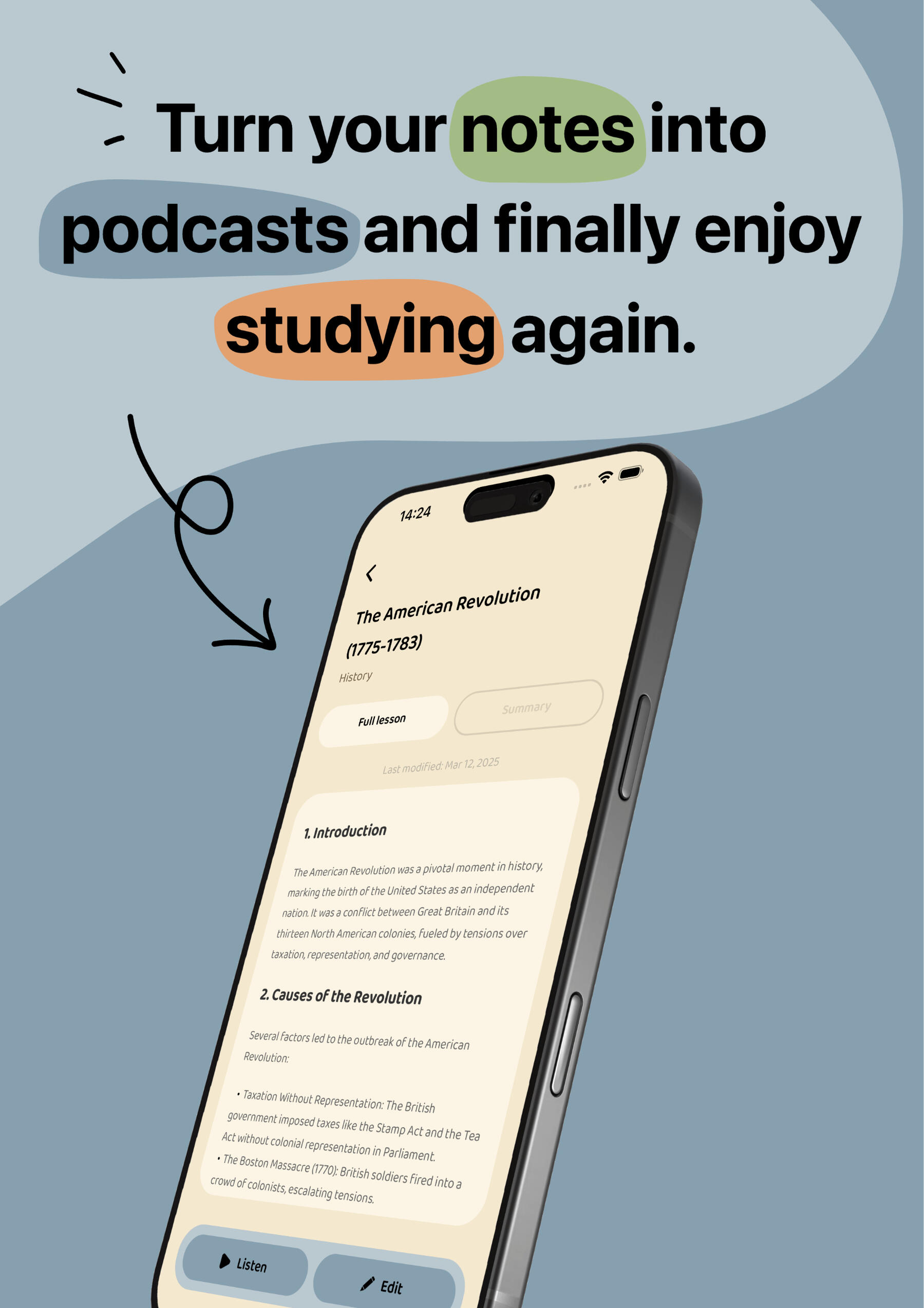Turn your notes into podcasts and learn anywhere.